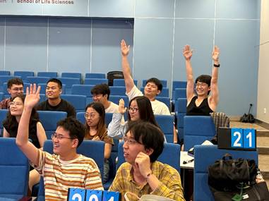 随后,生态学研究生第一党支部副支书吴雨茹同学介绍竞赛规则。竞赛分为必答题和抢答题两个环节。赛前,参赛成员被划分为6个小组和2大赛区。在必答题环节,各参赛小组依次答题,旨在考查基础知识储备。而抢答题环节更具挑战性,选手们需抢答获得答题机会,特别考验大家的反应速度和应变能力。各参赛小组认真聆听规则,他们眼神坚定、胸有成竹,跃跃欲试,准备在竞赛中一展风采。