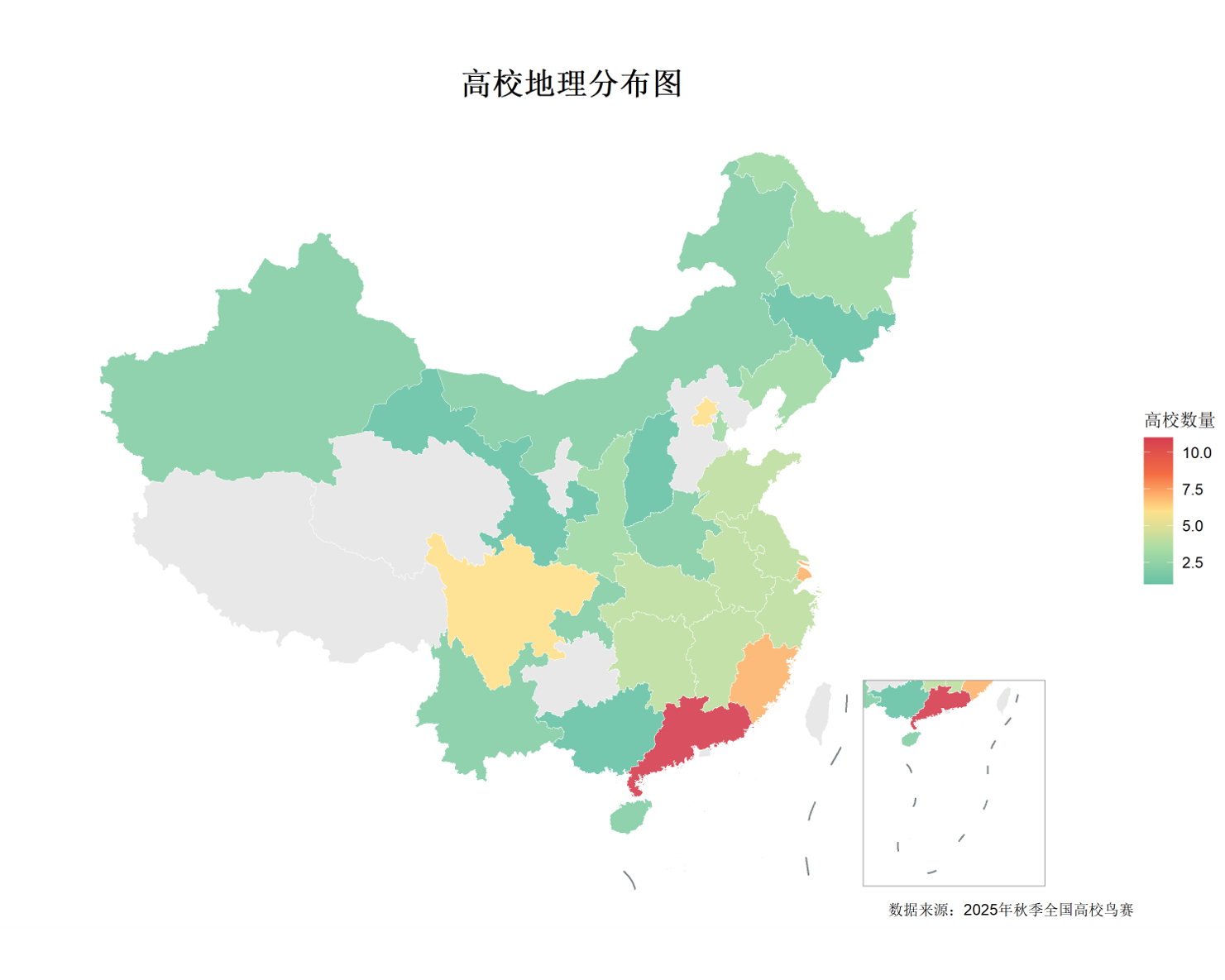 东北林业大学、新疆理工学院和兰州大学,凭借其独特的地理位置优势,以及参赛成员的努力,获得独有鸟种比例最高的前三名!