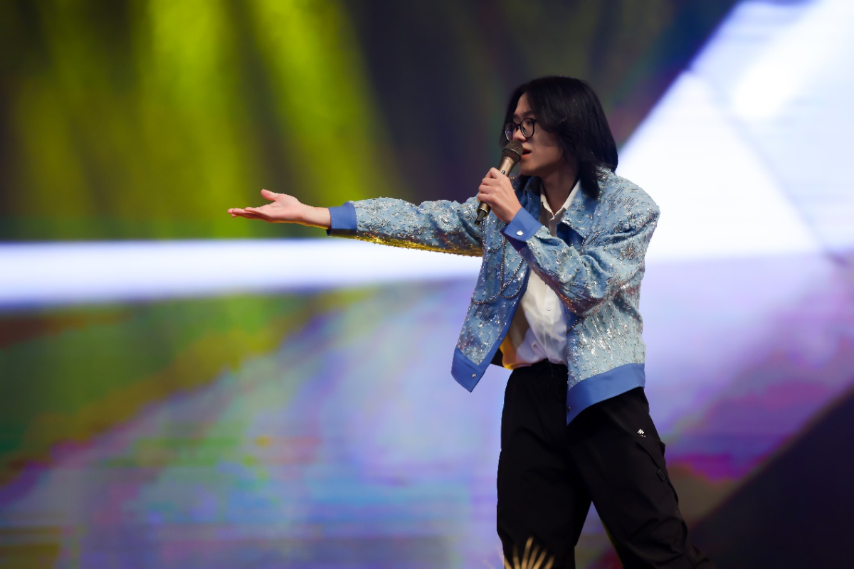 这段参赛旅程,让我完成了从内敛到开朗的转变,也一点点克服了自身的局限。最初我表情僵硬、畏惧与观众对视,站在舞台上毫无自信;在不断练习与突破中,我学会了放松自己,用自然的微笑和表达去面对观众。作为主唱,我最初承受了很大压力——缺乏舞台经验和声乐训练,一度怀疑自己能否胜任。但在杜学长的陪伴与指导下,我的演唱逐步提升;艺术学院徐老师、刘老师则教会我如何用声音传递情感,让演唱不再是简单的发声,而是充满深度的表达。与此同时,在老师们的纠正下,我改掉了驼背的习惯,站姿变得挺拔,仪态的改善让我在舞台上更加自信、舒展。