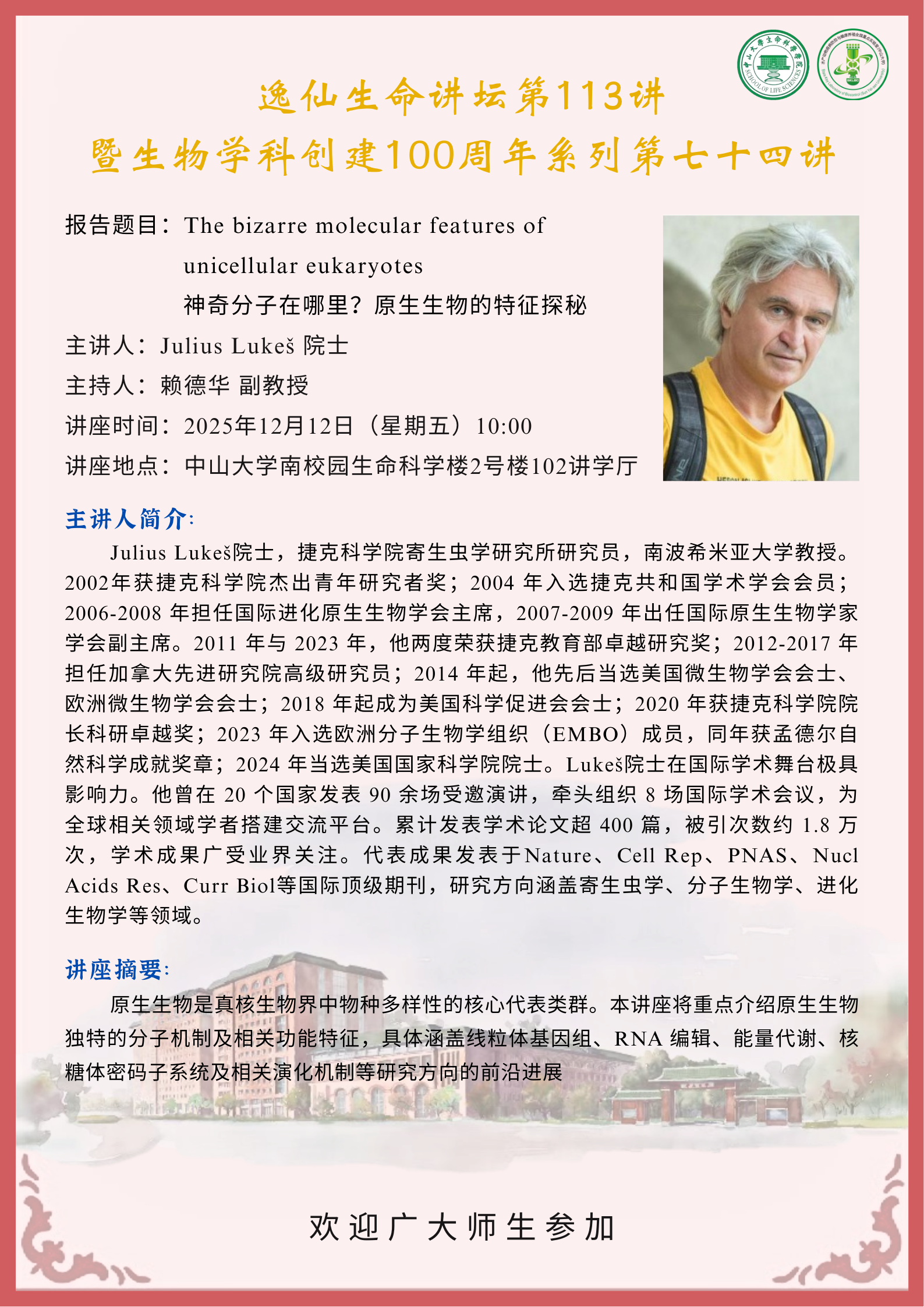 2025年12月12日麻豆传媒 逸仙生命讲坛第113讲:The bizarre molecular features of unicellular eukaryotes