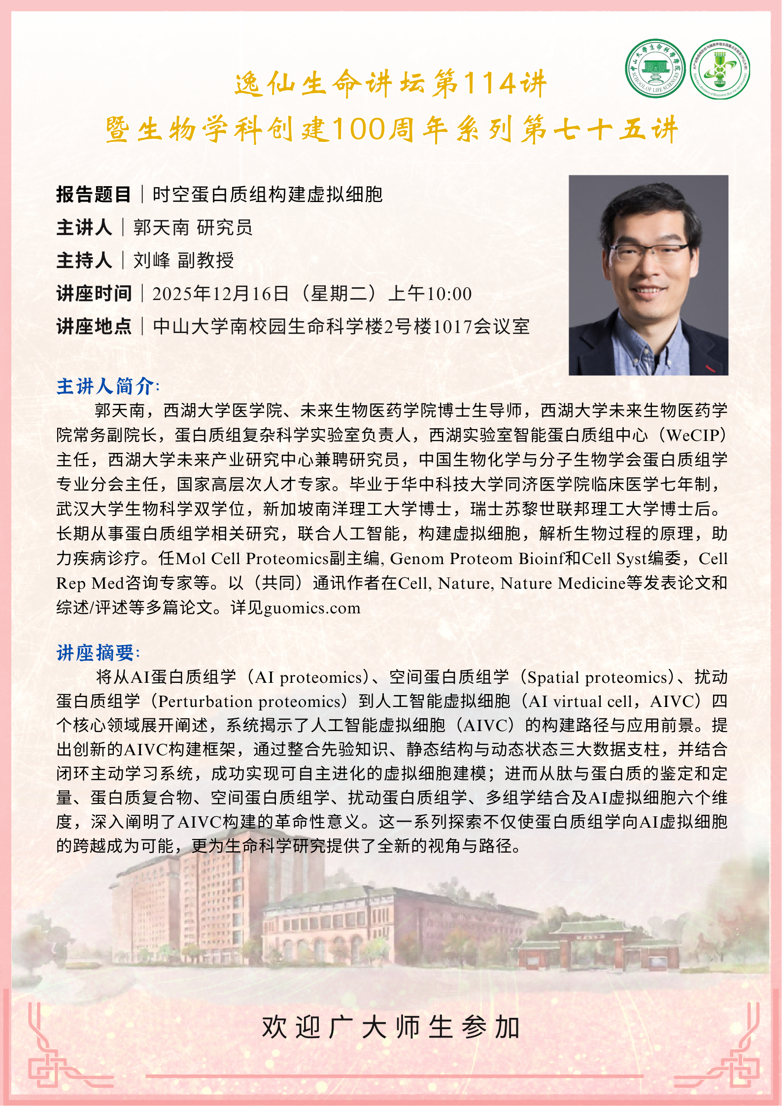 2025年12月16日麻豆传媒 逸仙生命讲坛第114讲:时空蛋白质组构建虚拟细胞
