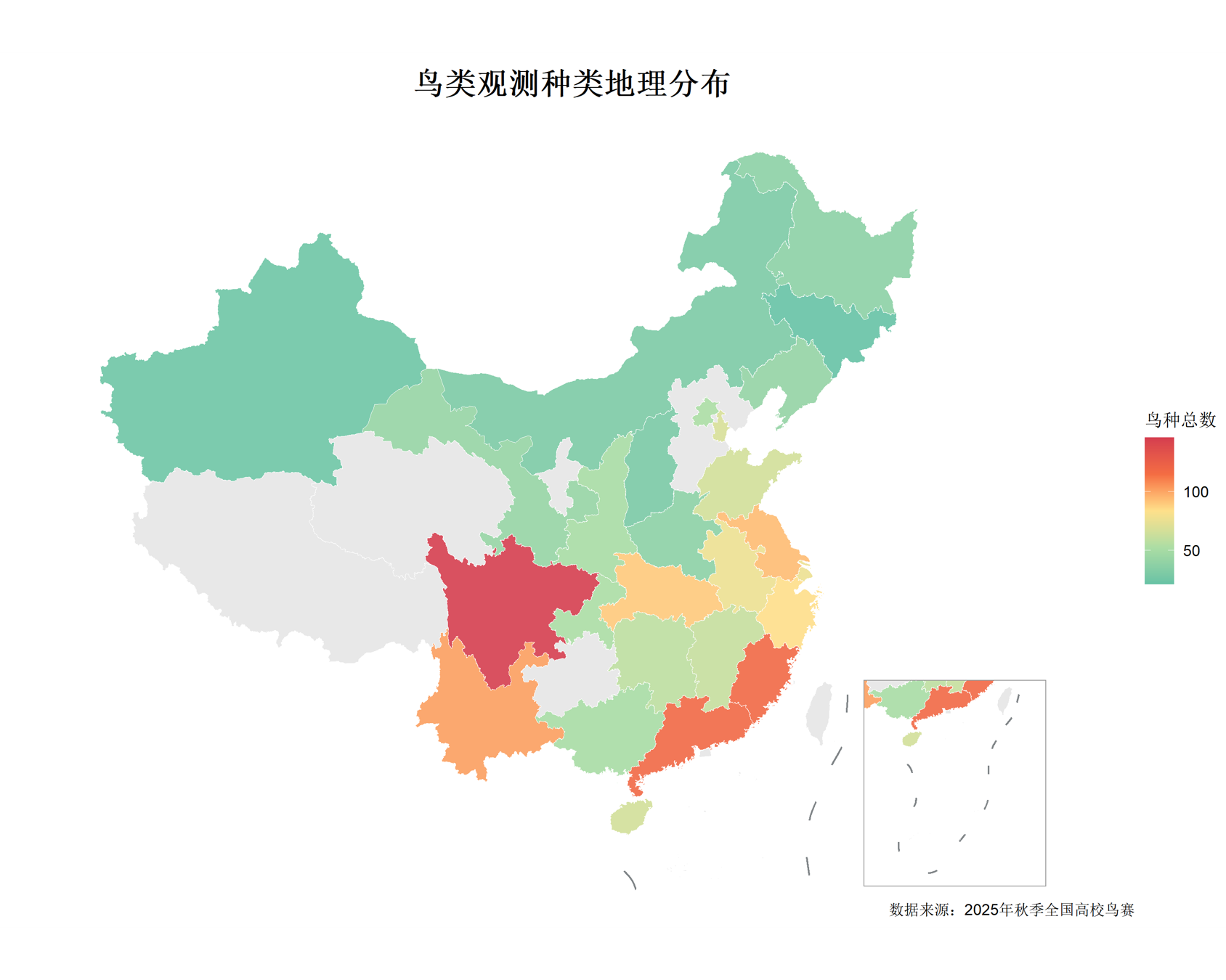 东北林业大学、新疆理工学院和兰州大学,凭借其独特的地理位置优势,以及参赛成员的努力,获得独有鸟种比例最高的前三名!