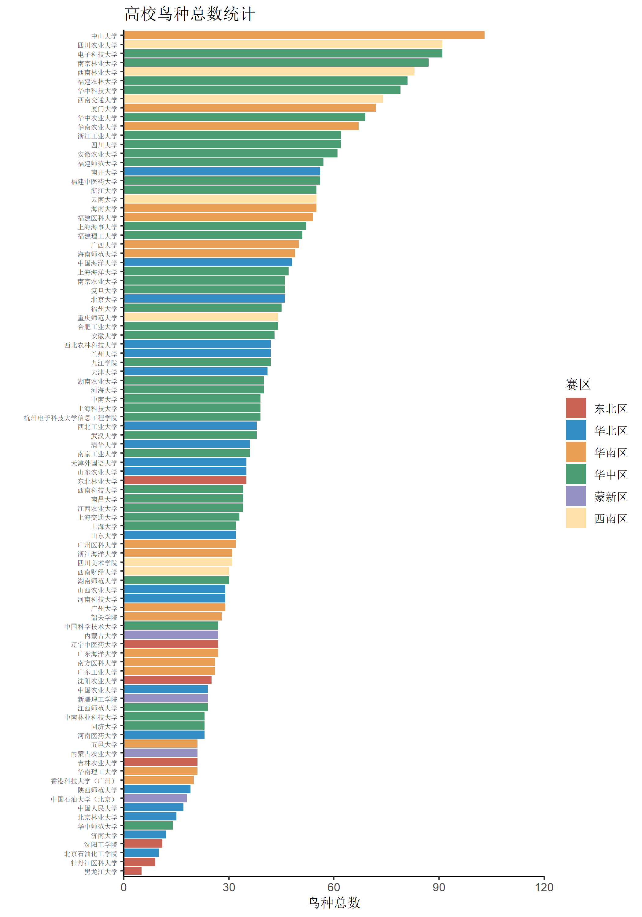 本次鸟赛所有队伍的鸟种总数统计结果如下: