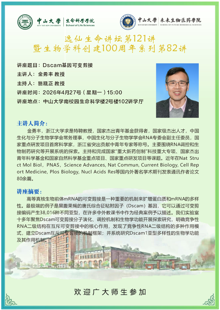 导航痕迹 麻豆传媒 2026年4月27日逸仙生命讲坛121讲:Dscam基因可变剪接 扫描此二维码分享 2026年4月27日逸仙生命讲坛121讲:Dscam基因可变剪接 发布人:李晶 发布日期:2026-04-22 活动时间 2026年04月27日 15:00 - 2026年04月27日 17:00