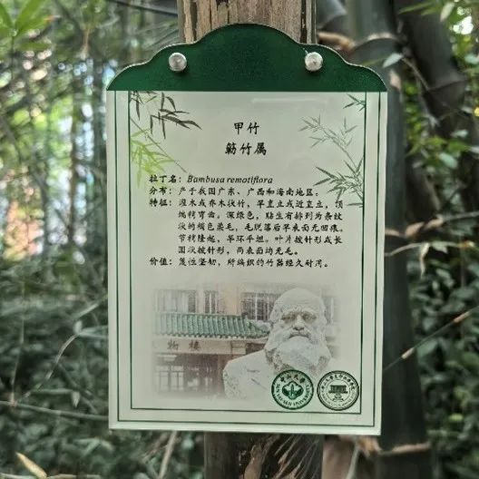 紧接着,教职工党支部的老师们引领学生支部成员步入幽静的竹园,开展竹种挂牌活动。在这个过程中,大家对中大竹园丰富多样的竹种有了更为深入的认知。这座竹园不仅是国内种类最为丰富的竹种标本园之一,更珍藏着我国数量最多的竹类活体模式标本,为早期的华南植物园竹园提供了近半数的竹种资源。除了竹子外,本竹园也零星种植有其他珍贵的植物,如国家一级保护植物猪血木(Euryodendron excelsum,山茶科),该植物由是中国近代植物分类学的开拓者和奠基人之一的陈焕镛院士亲自引入种植的。另外还有麻豆传媒
